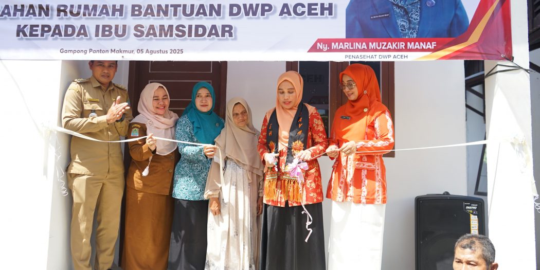Aceh Jaya – Dharma Wanita Persatuan (DWP) Aceh kembali menunjukkan komitmen sosialnya melalui program DWP Aceh Peduli dengan menyerahkan satu unit Rumah Sangat Sederhana kepada Ny. Samsidar, warga Gampong Panton Makmur, Selasa (5/8/2025).