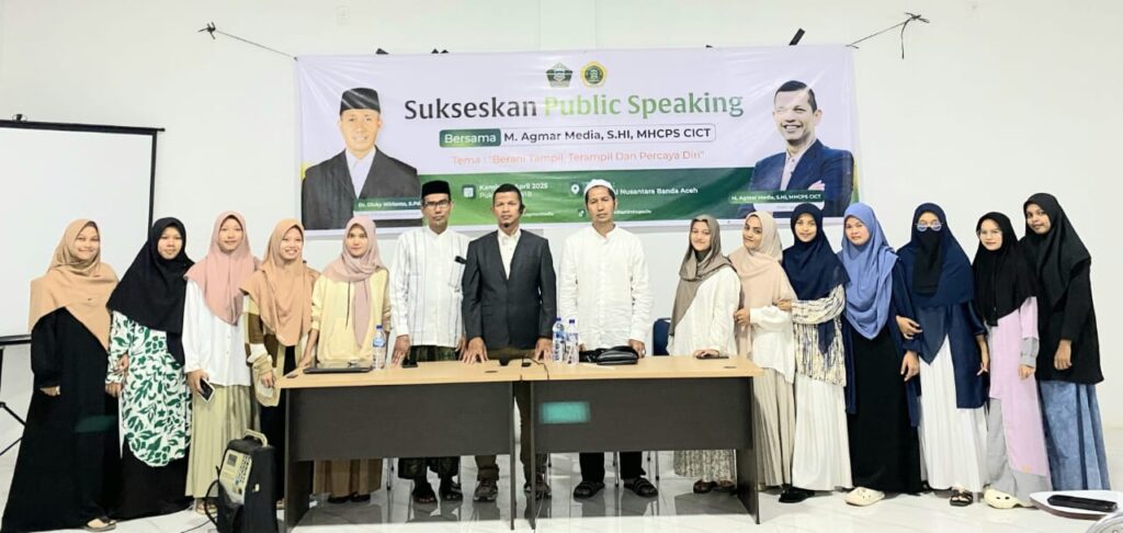 Banda Aceh – Dalam upaya meningkatkan kapasitas interpersonal mahasantri, Sekolah Tinggi Agama Islam (STAI) Nusantara Banda Aceh kembali menggelar pelatihan public speaking yang dikemas secara inspiratif. Kegiatan ini menghadirkan tokoh muda berbakat asal Pidie, Ust. M. Agmar Media, S.HI., MH., CPS., CITC., yang juga merupakan dosen Universitas Jabal Ghafur (Unigha).